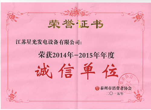 2014-2015年度泰州市诚信单位