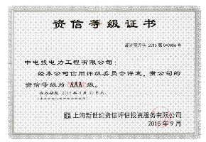 中电联企业信用AAA等级