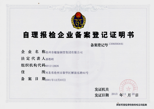 自理报检单位证书