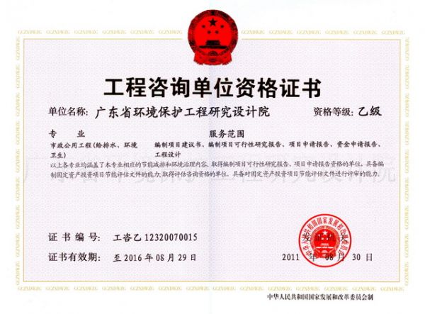 工程咨询单位资格证书(乙级)