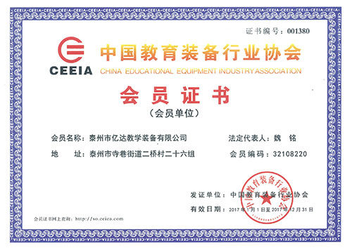 中国教育装备行业协会会员证书
